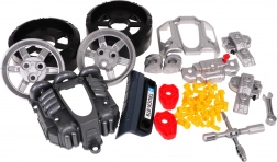 Pachetul include roți cu capace, 31 de șuruburi, unelte, autocolante decorative și manual. Distracția cu efecte luminoase ale farurilor și motorului, precum și sunetele de mers și marșarier, îi va ține pe micii pasionați de mașini mult timp în acțiune.