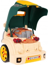 Setul include unelte și numeroase șuruburi, datorită cărora copiii pot asambla și dezasambla motorul și roțile iar și iar. Joaca dezvoltă abilitățile manuale, creativitatea și gândirea tehnică. Alimentare cu 3× AA 1,5 V (nu sunt incluse).