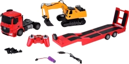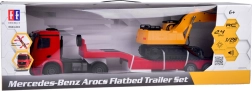 Faceți bucurie micilor constructori cu acest set uimitor de construcție cu telecomandă marca Mercedes-Benz, care oferă distracție realistă cu un camion, o remorcă și un excavator la scară de 1:26.
