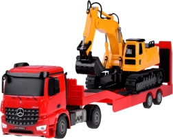 Cu ajutorul telecomenzii cu frecvență de 2,4 GHz, se poate controla cu ușurință camionul cu remorcă înainte, înapoi și nu doar direcționare, ci și se pot bucura de efecte sonore realiste.