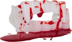 Dinții albi cu detalii roșii imită sângele proaspăt și conferă costumului un aspect horror pronunțat în câteva clipe.