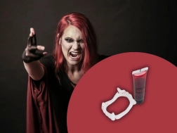 Tubul practic cu sânge fals permite realizarea de picături și urme pentru o mască de vampir și mai autentică.