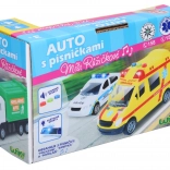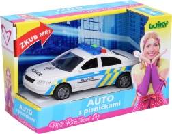 Această mașină de poliție este jucăria perfectă pentru copiii de la 3 ani. Datorită mecanismului cu inerție, jocul cu mașina devine distractiv și realist. Efectele luminoase și sonore, care sunt activate prin butoane pe acoperișul mașinii, aduc distracție veselă și stimulează imaginația copiilor. Include trei cântece populare de la Miša Rožičková: Poliția, Ambulanța și Gunoierii.