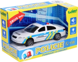 Mașină de poliție cu lungimea de 15,5 cm și cu propulsie pe volant este o distracție grozavă pentru micii apărători ai legii. Datorită efectelor de lumină și sunet, pe care le activați cu ajutorul butoanelor de pe acoperișul mașinii, veți experimenta o aventură reală.