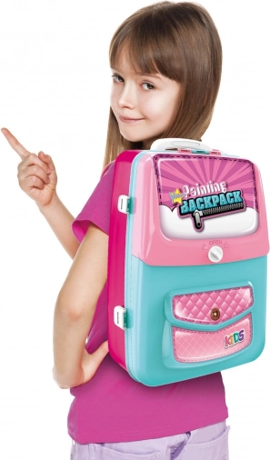 Rucsac creativ pentru copii roz de 28 cm cu compartimente practice și tablă magnetică. Ideal pentru creație și învățare.