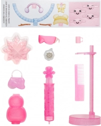 Look-ul de iarnă în tonuri de roz este completat de ochelari, poșetă, pieptene și suport pentru expunere. Excelent pentru styling, joacă și fotografii.