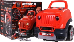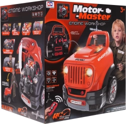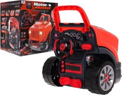 O jucărie distractivă și educativă pentru copii de la 3 ani: partea frontală a unui camion cu capotă rabatabilă, motor demontabil și bord realist. Copilul își va încerca rolul de mic mecanic – are la dispoziție unelte, efecte luminoase și sonore, simularea unei cutii automate și o cheie telecomandă pentru controlul luminilor și sunetelor. Jucăria dezvoltă motricitatea fină, îndemânarea și coordonarea mână–ochi, iar datorită mânerului se transportă ușor.