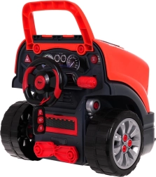 Acest camion interactiv transformă camera copilului într-un service adevărat. Sub capotă se află un motor mare, demontabil, care poate fi ușor asamblat și dezasamblat cu ajutorul șuruburilor și uneltelor, putând schimba bujiile și roțile. Pe bord găsești butonul de start cu sunete de pornire, volan cu claxon și semnalizare de avarie. Sub volan există un compartiment pentru scule.