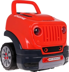 Sub capotă se află un motor mare, care poate fi demontat și reasamblat cu ajutorul șuruburilor și uneltelor. Copiii își exersează motricitatea fină și înțeleg cum funcționează mașina.