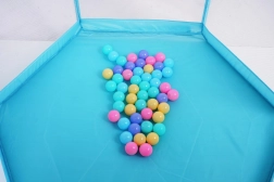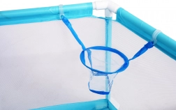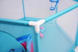 Pachetul include 50 de bile colorate, iar în interior se află şi un coş pentru aruncat, care susţine motricitatea şi joaca distractivă. Ţarcul este uşor de transportat, potrivit pentru interior şi exterior, iar suprafeţele se întreţin uşor.