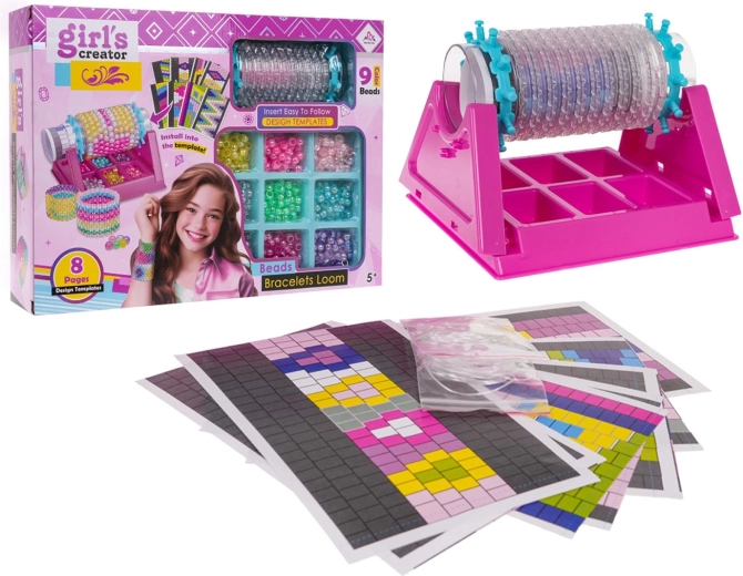 Acest set complet le permite copiilor să creeze ușor și distractiv brățări originale. Este suficient să fixezi tubul de plastic pe suport, să torni mărgelele în compartimentele clare, să alegi un model din șablon sau să creezi după propria imaginație și să începi să țeși de la dreapta la stânga. Setul este colorat, intuitiv și ideal pentru primele încercări în lucrul manual.