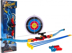 Set distractiv pentru micii arcași de la 3 ani: arc pentru copii cu vizor reglabil și laser, săgeți moi cu ventuze, țintă cu ventuză și săgeți de aruncat. Jocul dezvoltă precizia, concentrarea și este un excelent antrenament pentru umeri și spate. Totul este sigur pentru copii datorită ventuzelor din cauciuc.