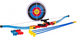 Pachetul include și săgeți de aruncat cu ventuze și țintă cu ventuză din cauciuc, care poate fi fixată pe o suprafață netedă. Ventuzele moi de pe săgeți și pe săgețile de aruncat asigură siguranță maximă, în timp ce jocul susține coordonarea mână–ochi și fortifică mușchii umerilor și spatelui.