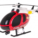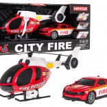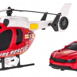 Setul interactiv de pompieri combină un elicopter robust și o mașină de pompieri rapidă pentru un joc realist de salvare. La apăsarea butonului, elicopterul pornește iluminarea frontală și spate și redă sunete autentice de motor, sirenă și zbor. Mașina, cu mecanism cu rulare liberă și anvelope din cauciuc, se deplasează lin pe orice suprafață. Rotoarele elicopterului pot fi rotite manual pentru și mai multă distracție.
