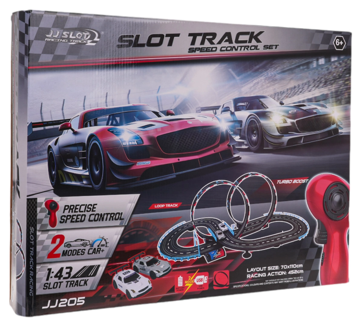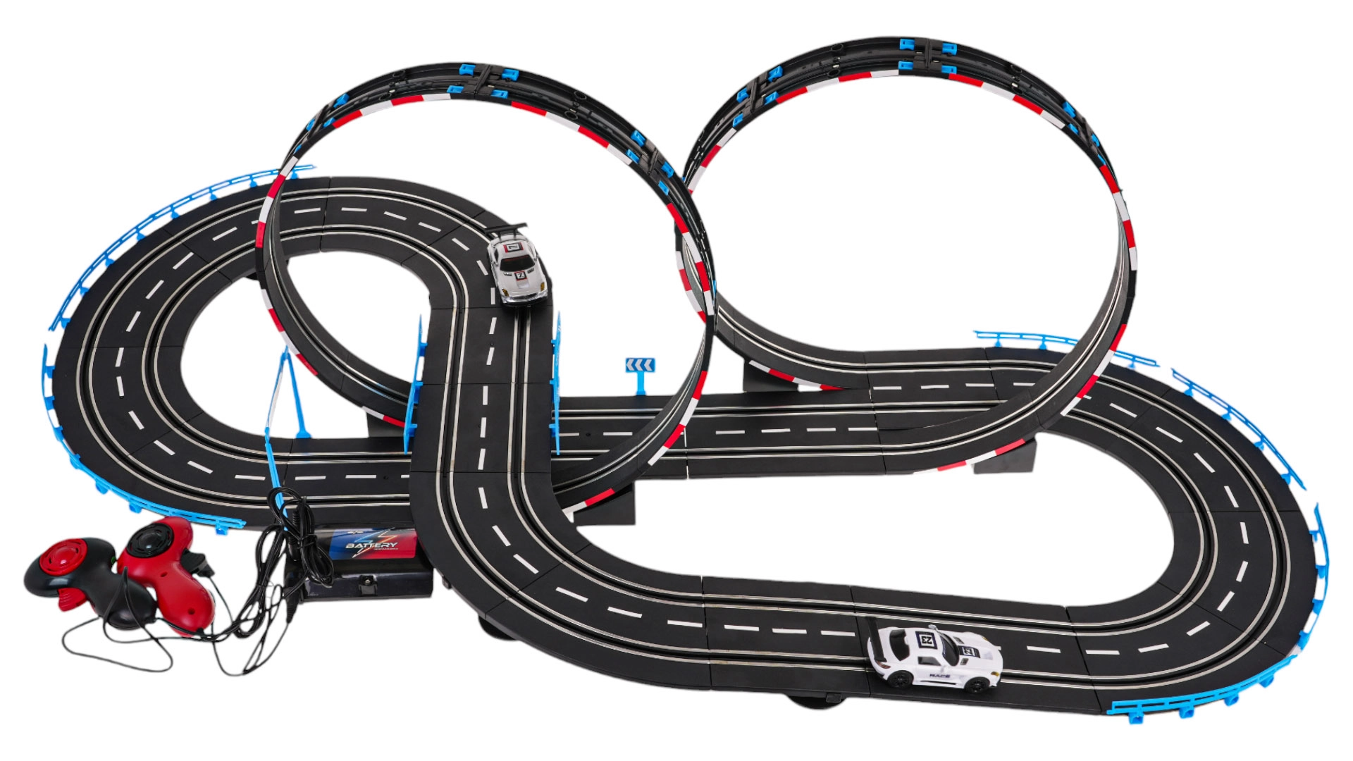 Blocurile de construcție individuale vă permit să construiți o pistă cu viraje strânse, spirale și porțiuni drepte, toate pentru distracție maximă și un plus de adrenalină pe tot parcursul jocului. Setul include două vehicule. Setul este ideal pentru copii peste 6 ani. Jucăria este alimentată cu 6 baterii AA 1,5 V (bateriile nu sunt incluse). .. Funcții ale setului . - potrivit pentru copii peste 6 ani, .- fabricat din materiale ușoare și de calitate, .- pista include porțiuni drepte, bucle de 360 de grade, viraje, spirale, .- scalare la scara 1:43, .- pista poate fi conectată la rețea sau alimentată cu baterii, .- 2 viteze. . .