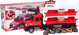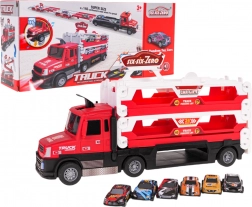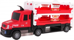 Camion distractiv pe trei niveluri cu catapultă pentru copii de la 3 ani, oferă ore întregi de joacă plină de acțiune. Are anvelope din cauciuc pentru o rulare stabilă, efecte luminoase și sonore, iar după deschidere se transformă într-o pistă lungă de 140 cm. Include 6 mașinuțe metalice la scară 1:64 și un organizator/sorter practic pentru vehicule.