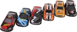 Sunt incluse șase mașini de curse detaliate la scară 1:64, cu caroserie metalică rezistentă, gata pentru curse imediat.