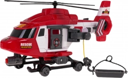 Elicopterul are uși laterale care se deschid, cârlig manual cu coș de transport și rotori care pot fi puși în mișcare. Luminile LED din față și sunetele autentice de zbor și alarmă adaugă tensiune fiecărei misiuni. Jucăria este alimentată de baterii 3× AG13 (incluse în pachet), astfel că poate fi folosită imediat.
