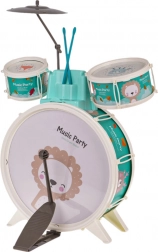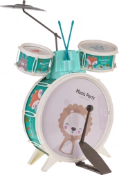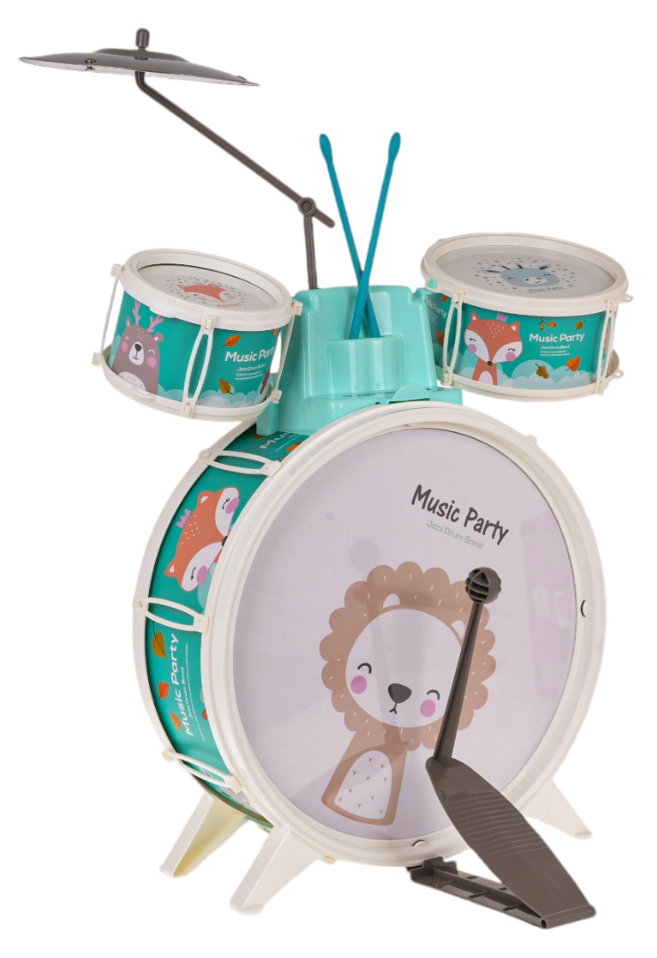 Aduceți bucurie în camera copiilor cu acest set de tobe. Conține trei tobe cu frumoase motive de animal, un taler și două bețe. Este inclus și un scăunel confortabil pentru o statură ușoară în timpul cântării.
