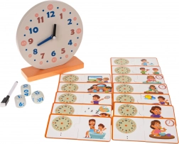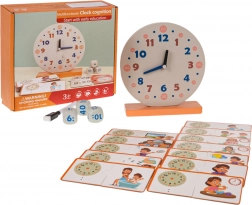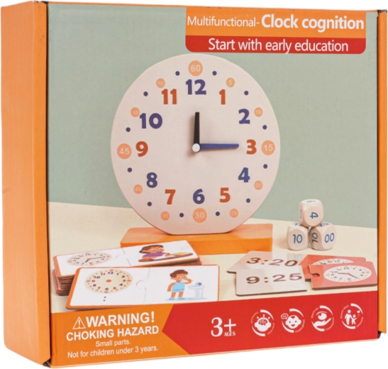 Setul educațional Ceasuri cu accesorii este conceput pentru a ajuta copiii să înțeleagă ușor conceptul de timp. Conține un ceas mare din lemn cu ace mobile, trei cuburi cu valori diferite ale timpului și 24 de piese duble pentru combinare. Copiii pot învăța să recunoască orele, să exerseze memoria și concentrarea, totul într-o manieră jucăușă.