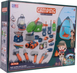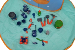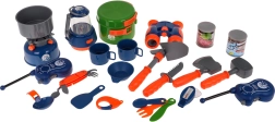 Cu 29 de piese, setul include tot ce este necesar pentru un joc de camping distractiv, inclusiv un aragaz, lampă și vase.