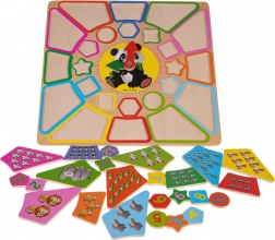 Setul educativ este un ajutor excelent pentru învățarea orei și numărătorii. Conține o tablă colorată cu ceasuri centrale și arătătoare mobile. Copiii pot seta diferite ore și le pot asocia cu cifrele corespunzătoare și numărul de animale. Întregul set este realizat din lemn de calitate și vopsit cu culori netoxice în nuanțe vii.