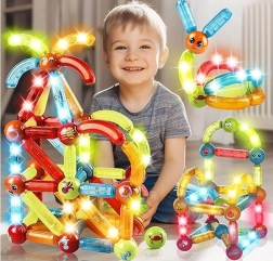 Setul magnetic permite construirea de structuri diverse, atât plate cât și tridimensionale, susține jocul creativ și dezvoltarea abilităților motorii și logice.