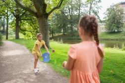 Joc pentru 2 jucători de la 6 ani. Mingiuța pufoasă, fabricată din bambus împreună cu material elastic, sare vesel. Acest set de tenis este ideal și pentru copiii mici, deoarece rachetele pot fi ținute cu ambele mâini. Rachetele rotunde și elastice resping mingea între ele ca niște trambuline mici. Misiunea acestui joc este să le permită copiilor să se distreze fără smartphone-uri și tablete.