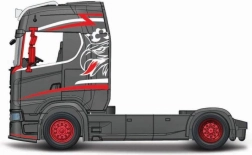 Acest model de camion Scania 770S la scara 1:43 surprinde fidel caracterul cabinei iconice – de la grila radiatorului și faruri până la roțile realizate cu precizie. Construcția metalică garantează rezistență și durată de viață îndelungată, în timp ce grafica pronunțată și accentele de culoare oferă un aspect impresionant.