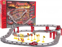 Pistă de curse versiunea pompieri este jucăria perfectă pentru micii aventurieri. Setul include numeroase elemente pentru a simula o acțiune de pompieri și experiența unei curse dinamice, inclusiv patru vehicule de pompieri.