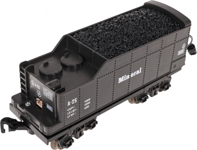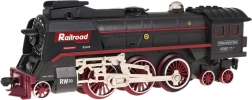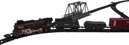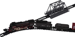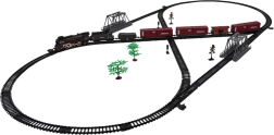 Set trenuleț retro cu funcție de fum, sunete de rulare și șine incluse în pachet, potrivit pentru copii de la 3 ani. Jucăria este alimentată de o baterie reîncărcabilă de 3,7 V (inclusă), telecomanda cu 2 x AA 1,5 V (neincluse). Telecomanda este totodată unul dintre vagoane. În timpul mersului, locomotiva eliberează fum din coș și pe laterale (după umplere cu apă – pipeta pentru apă este inclusă), iar în partea frontală are un far funcțional. Șinele au un sistem de conectare ușor, fiind sigure și robuste la utilizare. .. Funcțiile setului: . - potrivit pentru copii de la 3 ani, . - fum care iese din coș și curge pe laterale, .- far frontal la locomotivă, .- sunete în timpul mersului, .- mers înainte și înapoi. |