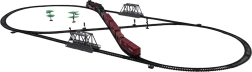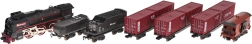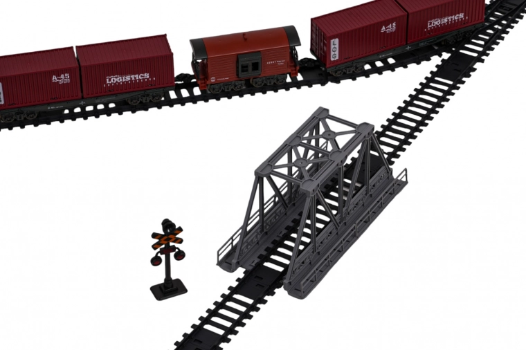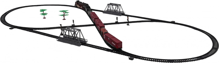 - locomotivă aprox. 23 cm x 8 cm x 5,5 cm .- vagon de pasageri aprox. 13 cm x 6 cm x 4,5 cm, .- vagon pentru cărbune aprox. 14,5 cm x 7 cm x 4,5 cm, .- vagon cu pilot aprox. 12,5 cm x 5 cm x 4,5 cm, .- vagon cu containere aprox. 22,5 cm x 7 cm x 4,5 cm, .- traseu aprox. 216 cm x 99 cm, .- ambalaj aprox. 87,5 cm x 43 cm x 9,5 cm, . |