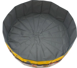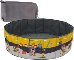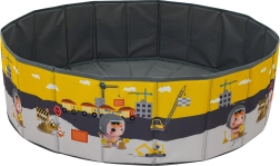 Locul de joacă pliabil are un diametru de aproximativ 100 cm și o înălțime de 29 cm, în timp ce ambalajul are dimensiunile de 47 cm x 29 cm. Setul cuprinde locul de joacă și ambalajul portabil corespunzător.