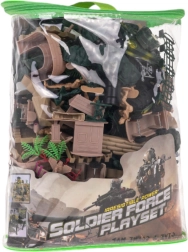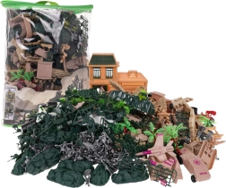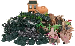 Acest set bogat echipat transformă orice cameră într-o zonă de luptă a imaginației. Copiii găsesc tancuri, mașini blindate, vehicule off-road, avioane, nave, o bază, ziduri, saci cu nisip, sârmă ghimpată și butoaie – tot ce trebuie pentru misiuni militare realiste. Figurinele sunt în trei culori și două mărimi, astfel încât echipele și rolurile pot fi diferențiate ușor.