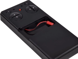 Telecomanda cu două manete permite control lin înainte/înapoi și viraje ușoare. Ideală pentru copii de la cca 8 ani.
