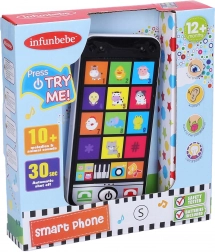 Smartphone interactiv distractiv pentru cei mici, imită un telefon cu ecran tactil real și dezvoltă simțurile și motricitatea. Oferă efecte luminoase și sonore, 10 butoane cu sunete de animale, 6 butoane cu muzică și efecte și mod de cântat la clape. Se oprește automat după 30 de secunde, economisind astfel bateria.