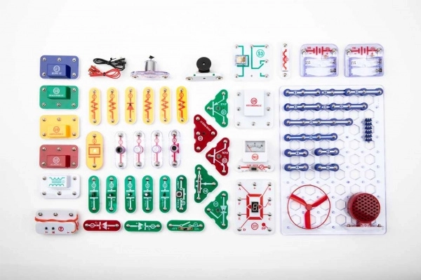 - 1× placă, 75× componentă (conductor, diodă, condensator, microfon, circuit integrat etc.), 1× manual