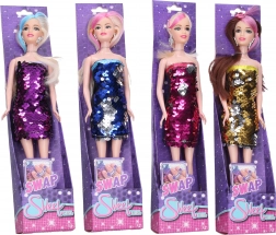 Îmbracă, coafează și hai la oraș pentru distracție! Această păpușă stilată cu o bandă colorată în păr și rochii cu paiete, care își schimbă culoarea prin simpla atingere cu mâna, este ideală pentru orice fetiță.