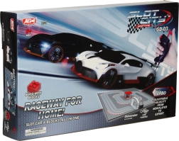 Circuitul de curse electric reprezintă o jucărie fascinantă care introduce copiii în lumea curselor pline de adrenalină! Setul include două mașinuțe sport cu care micii piloți pot concura pe o pistă plină de curbe. Mașinuțele sunt controlate cu joystick-uri, ceea ce permite un control precis al vitezei.