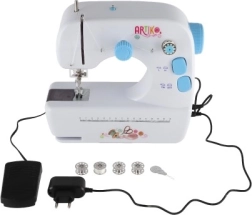 Mașina este alimentată fie cu baterii tip AAA 4x, care nu sunt incluse, fie cu o sursă externă de alimentare inclusă în pachet. De asemenea, pachetul conține bobine și un ac de rezervă, permițând cusutul fără probleme.