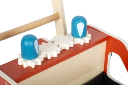 Distracția și dezvoltarea motricității fine sunt susținute de detalii funcționale: roți dințate, volan rotativ cu manivelă și lumini albastre mobile. Coșul detașabil din fetru servește ca spațiu de depozitare pentru jucării și mici comori, pentru ca fiecare „intervenție” să fie rapidă și organizată.