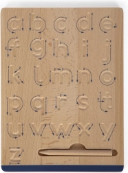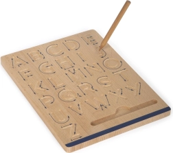 Execuția masivă din lemn certificat FSC® este durabilă și plăcută la atingere. Suportul integrat pentru creioane păstrează accesoriile mereu la îndemână, iar cele două creioane sigure din lemn, fără mină, permit repetarea curată, fără hârtie. Excelent pentru exersarea acasă, grădinițe și clase pregătitoare.