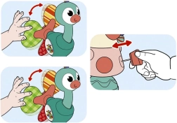 Datorită dimensiunilor compacte, jucăria este potrivită pentru tava scaunului de masă, masă sau podea netedă. Se curăță ușor și este un ajutor excelent la hrănire sau oricând aveți nevoie să captați atenția copilului.
