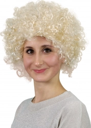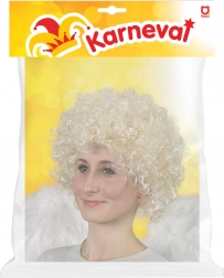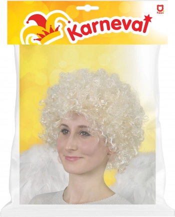 Peruca scurtă blondă cu bucle tip afro completează costumul tău de înger în câteva secunde și asigură un look de neignorat.