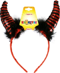 Impresionează la carnaval sau de Moș Nicolae cu un accesoriu stilat – o bentiță cu coarne de drăcușor decorate cu paiete strălucitoare și pene fine. Bentița ușoară din satin stă confortabil pe cap și oferă costumului tău un efect accentuat și fermecător.