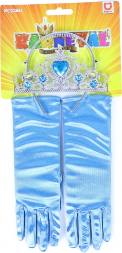 Cu acest set de prințesă îți vei asorta cu ușurință orice costum sau ținută de fantezie. Coronița argintie este decorată cu pietre albastre sclipitoare, care reflectă frumos lumina, iar mănușile albastre fine adaugă întregii stilizări o notă de noblețe. Ideal pentru carnaval, petreceri, evenimente tematice sau joacă de-a basmele acasă.