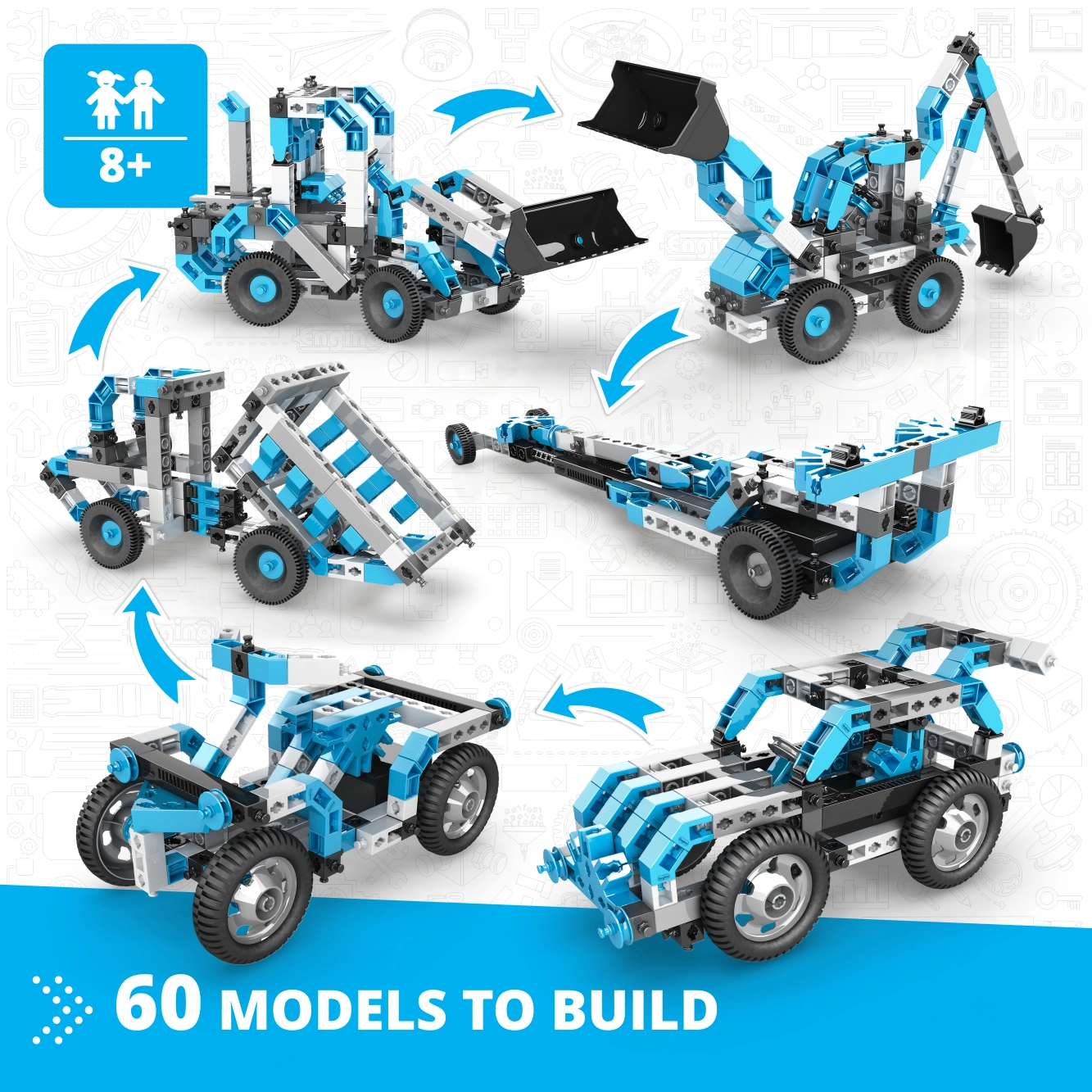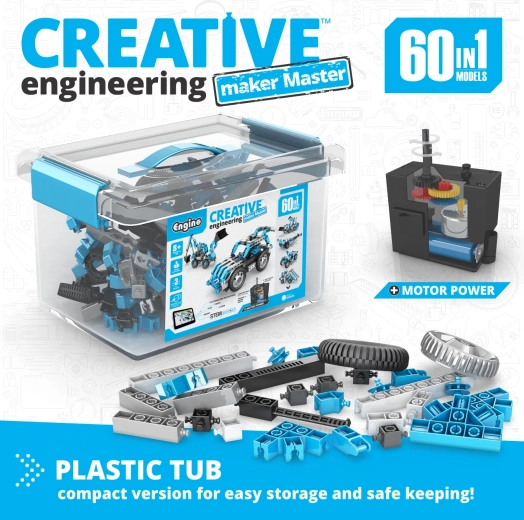Setul de construcție ENGINO Motorized Maker 60 în 1 este alegerea ideală pentru copiii de la 8 ani în sus, pasionați de tehnică și creație. Instrucțiunile color (o parte tipărite, o parte online sau în aplicația 3D gratuită) te ghidează prin asamblarea zecilor de modele. Piesele se fixează ușor prin clipsare, iar întregul set este depozitat într-o servietă practică din plastic pentru transport și stocare facile.