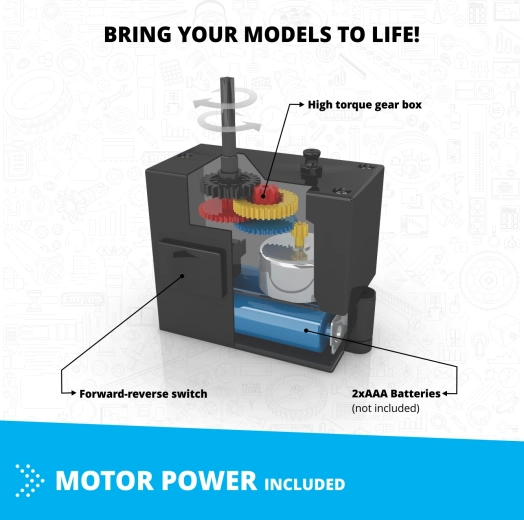 Datorită motorului puternic cu cutie de viteze și cuplu ridicat, modelele tale prind viață în mișcare. Setul susține principiile STEM (știință, tehnologie, inginerie, matematică) și îi motivează pe copii să experimenteze și să creeze propriile construcții.