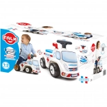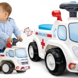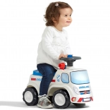 Mașinuța fără pedale cu aspect de ambulanță stimulează imaginația copiilor și dezvoltarea echilibrului. Datorită volanului cu claxon, copiii își îmbunătățesc coordonarea mișcărilor, iar roțile late și construcția stabilă oferă siguranță la primele plimbări.