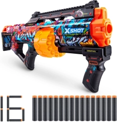 Pregătește-te pentru distracție la superlativ cu cel mai mare blaster cu spumă din gama X-Shot Skins! Modelul Last Stand Graffiti combină un raza de acțiune impresionantă de până la 27 m, tragere rapidă și precizie excelentă. Tamburul rotativ automat are o capacitate de 14 săgeți, iar în pachet găsești în total 16 săgeți cu tehnologie Air Pocket pentru focuri mai rapide, mai lungi și mai precise.